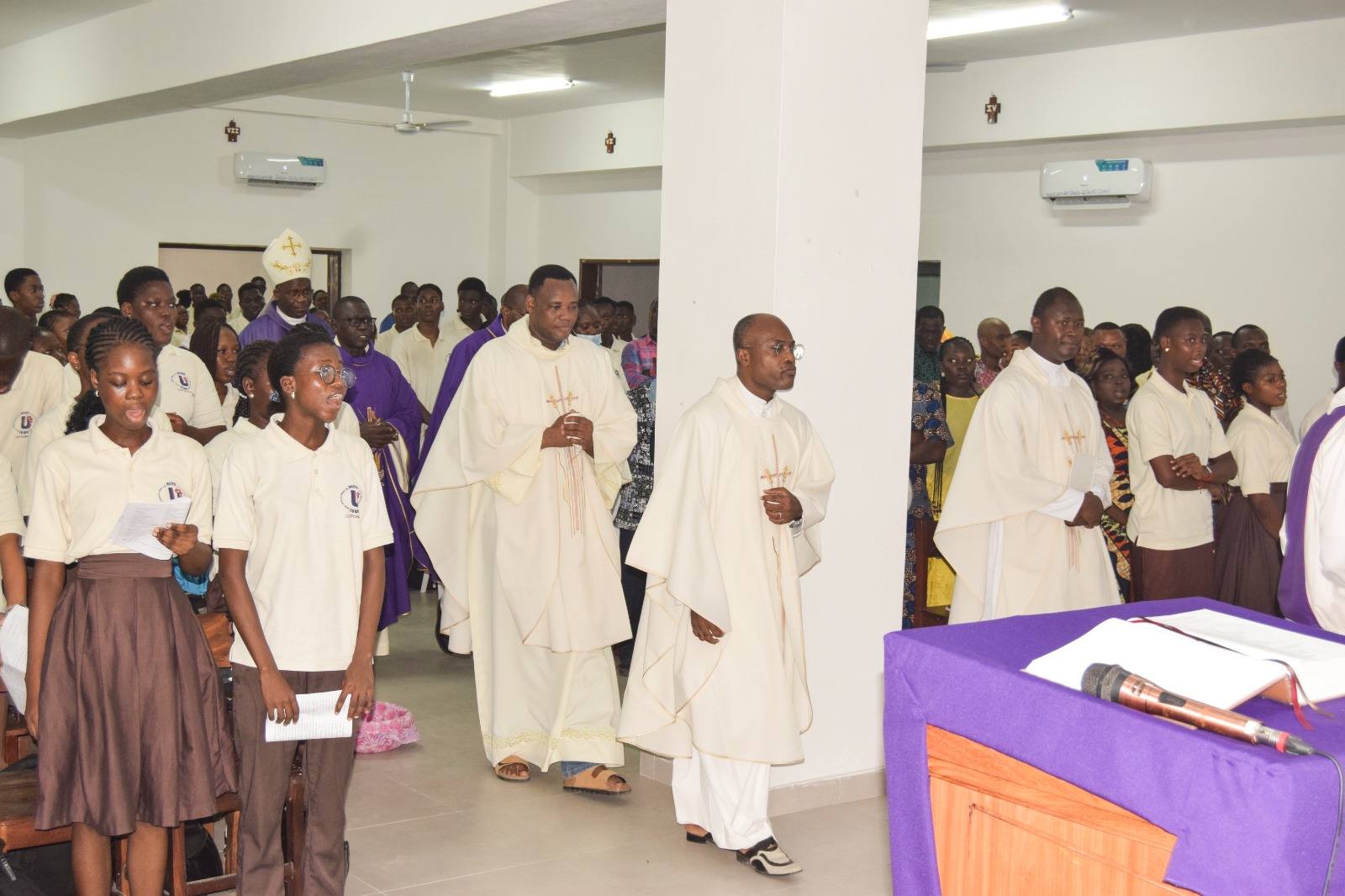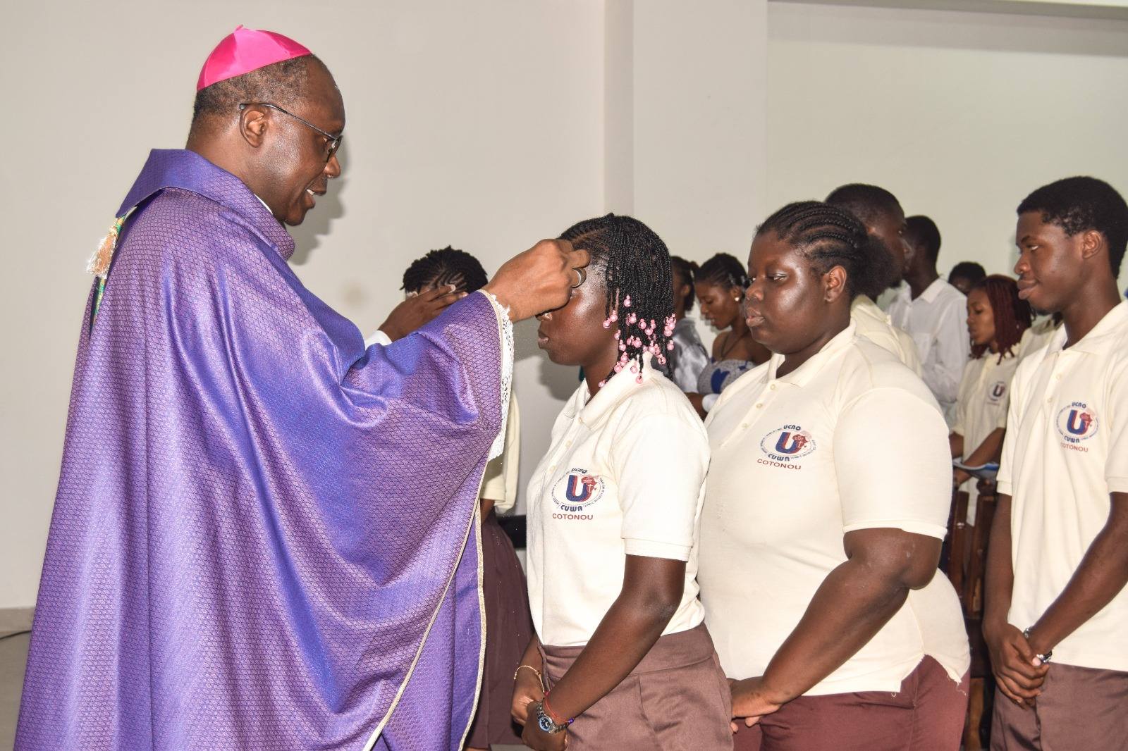 Pour marquer l’entrée dans ce temps sacré, le mercredi 5 mars 2025, toute la communauté universitaire de l’UCAO-UUC était réunie dans la chapelle de l’université à son siège au quartier Saint-Jean Gbèdiga, autour de l'Archevêque de Cotonou, Président de la Conférence Épiscopale du Bénin et Vice-Chancelier de l'UCAO-UUC, Son Excellence Monseigneur Roger HOUNGBEDJI pour célébrer l’imposition des cendres.