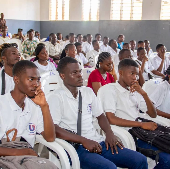 Le mercredi 19 avril 2023, les Journées Portes Ouvertes s'est poursuivie dans la matinée par une conférence de l'Agence Nationale Pour l'Emploi (ANPE) sur le thème "Les opportunités offertes aux apprenants après leurs formations dans les filières de l'UCAO-UUC". Le conférencier, M. AMEGBEDJI Urbain, Directeur Général de l'ANPE, a présenté les aptitudes et atouts que doivent avoir un étudiant pour compétir sur le marché de l’emploi ou de l’auto-emploi et les opportunités qu’offre aujourd’hui le gouvernement béninois à travers les programmes et agences de promotion de l’emploi, des PME / PMI ainsi que les politiques pour améliorer le climat des affaires.