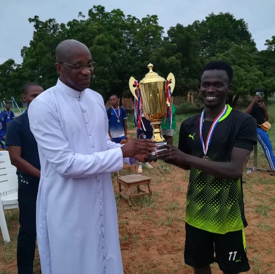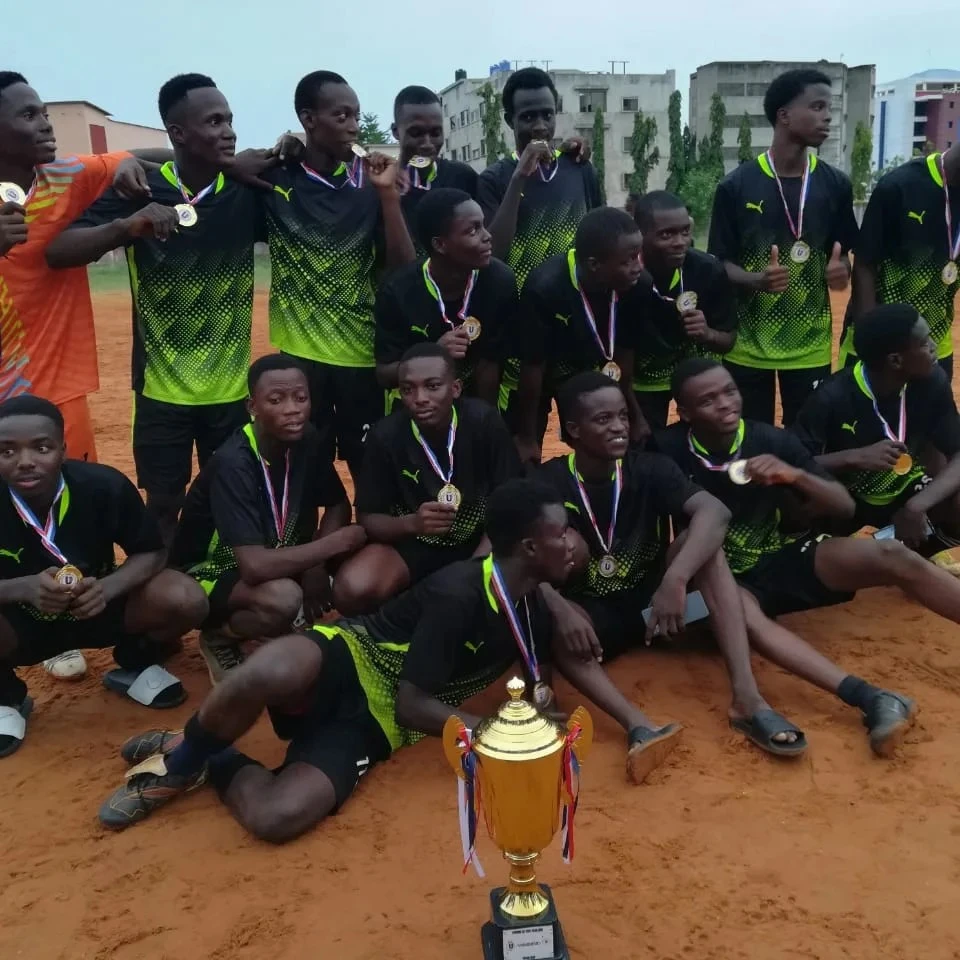 Cette première journée est marquée par la finale du tournoi de football jouée dans l'après midi sur le terrain du Collège Père Aupiais de Cotonou. Elle a opposé l'équipe de l'Ecole de Génie Électrique et Informatique (EGEI) et celle de la Faculté de Droit et d'Economie (FDE). Au terme d'un jeu âprement discuté, l'équipe de l'EGEI est sortie victorieuse face à celle de la FDE par le score de 3 buts à 2, et conserve pour la deuxième fois de suite son trophée de championne de l'UCAO-UUC. Au classement final, L'équipe de l'EGEI est logée à la première place suivie de la FDE et de l'ESMEA qui partagent respectivement la 2ème et la 3ème place du tournoi. Les différentes équipes ont reçu leur médaille des mains des responsables de l'UUC fortement représentés. Le trophée du vainqueur du tournoi a été remis par le Président de l'UCAO-UUC, le révérend Père Modeste B. SOME à l'équipe Championne. Rappelons que ces journées culturelles et sportives se déroulent les 1er, 02 et 03 mai 2024 sur le campus de l'UCAO à Gbégamey et s'achèvera par une excursion à Tori-Cada le samedi 04 mai 2024. Un rendez-vous à ne pas manquer ! #JournéesCulturelles 𝗨𝗖𝗔𝗢-𝗨𝗨𝗖 𝗙𝗢𝗜-𝗦𝗖𝗜𝗘𝗡𝗖𝗘-𝗔𝗖𝗧𝗜𝗢𝗡